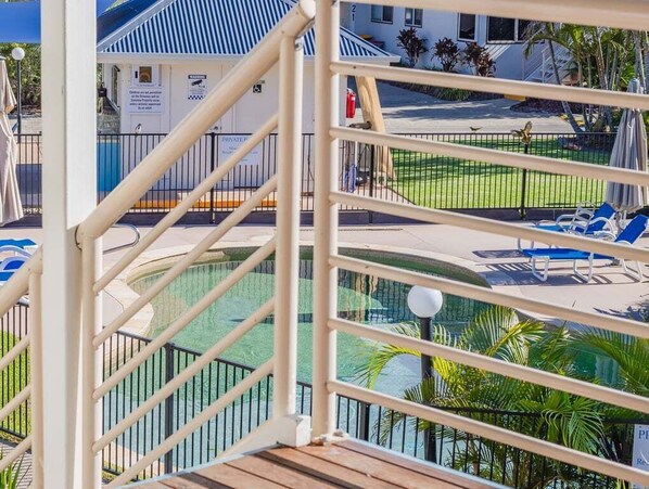 Nestled in the heart of Hastings Point, our Upstairs Garden View Apartments offer the perfect escape, combining coastal charm with comfort. With a cozy Queen Bed and two Twin Beds, there's space for everyone to relax and unwind. Step outside to your spacious balcony, where you can soak up the sun and enjoy views of the pool and lush, tropical gardens. It's the ideal spot to kick back, sip your morning coffee, and take in the serene surroundings.