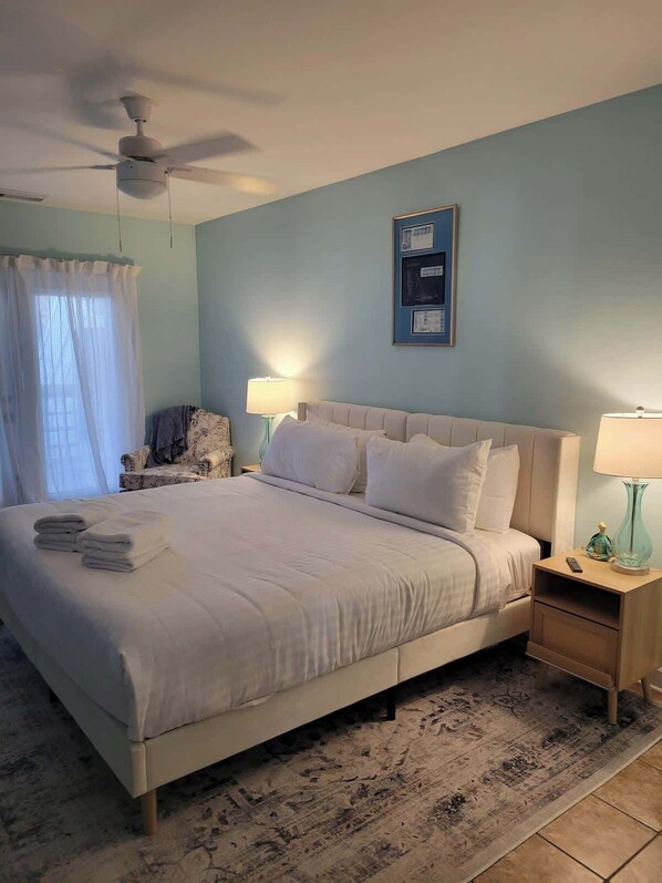 This 2-bedroom haven includes the 'Ocean Breeze Room' with a luxurious king bed and the 'Sand Dunes Room' featuring a plush queen, ensuring sweet dreams. Pamper yourself in our two spa-like bathrooms, including one with a rejuvenating jetted tub. Unwind in the cozy living room, where a comfortable sofa bed accommodates two additional guests. Step onto your private balcony whether you're sipping morning coffee or enjoying evening cocktails, the soothing atmosphere will melt your cares away.