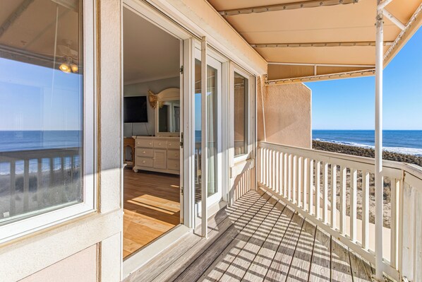 Victoria's Beachfront Retreat offers an unbeatable view of the Atlantic ocean from its three decks, perfect for sunrise and stargazing. This beachfront townhome features a fully equipped kitchen, cozy living room with an ocean view, and private balconies in select bedrooms. Enjoy unobstructed access to the beach, washer/dryer in unit, gas grill for outdoor cooking.