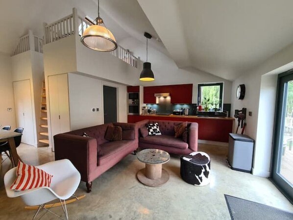 Escape to The Stables, a modern retreat nestled on 15 acres of peaceful countryside. Enjoy the warmth of underfloor heating, gather around the wood burning stove in the double-height living area or step outside onto the decking area with countryside views.