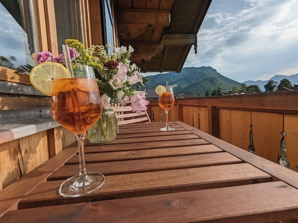 Outdoor dining - Vacation apartment 73 m², 1-4 persons, 2 bedrooms, balcony, private garden (Unterwössen)
