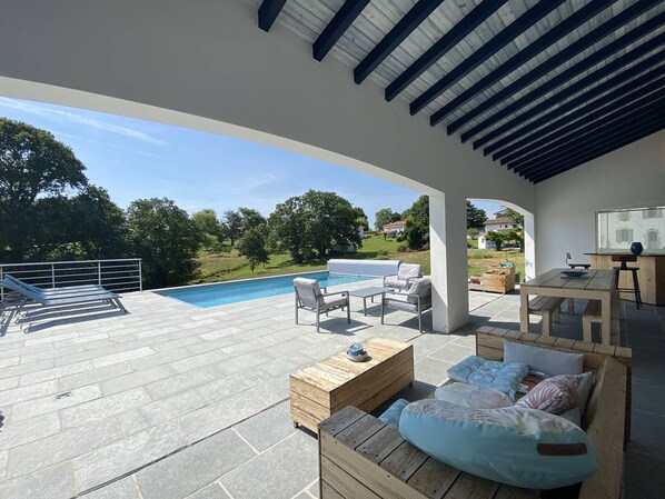 Outdoor dining - Charming Family Home in Quiet Urt with Pool, Sleeps 6-8 (Urt)