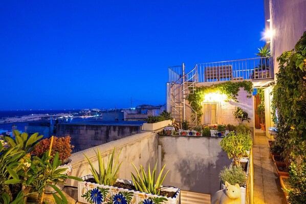 Guests have access to a spacious communal rooftop garden, shared with only the two other residences in the building. The rooftop features a sheltered lounge area and offers breathtaking, unobstructed views of the Grand Harbour entrance, the open sea, and Valletta’s skyline—an exceptional setting for relaxation at any time of day.