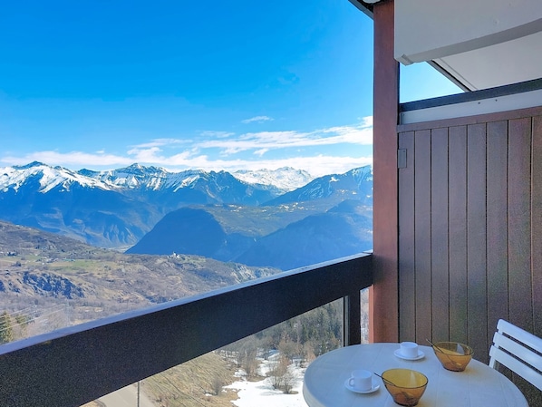 1-room apartment 28 m2 on 15th floor, north facing position. Simple furnishings: living/dining room with 1 pull-out bed (2 pers. 2 x 80 cm, length 190 cm), TV (flat screen), radio and DVD. Exit to the balcony, north facing position. Alcove with sliding door with 1 x 2 bunk beds (80 cm, length 190 cm). Kitchenette (2 hot plates, mini-oven, dishwasher, toaster, kettle, microwave, electric coffee machine, Capsules for coffee machine (SENSEO) extra, raclette grill, fondue Set (cheese)). Bathroom, sep. WC. Electric heating. Parquet floors. Balcony 4 m2, north facing position. Balcony furniture. View of the valley. Facilities: hair dryer. Internet (WiFi, extra). Please note: non-smokers only. Maximum 1 pet/ dog allowed. Smoke alarm. Instead of an enclosed bedroom, some sleeping areas are located in an open-plan area (gallery, alcove, etc.). Offer by a private individual according to Art. 155, IV of CGI.