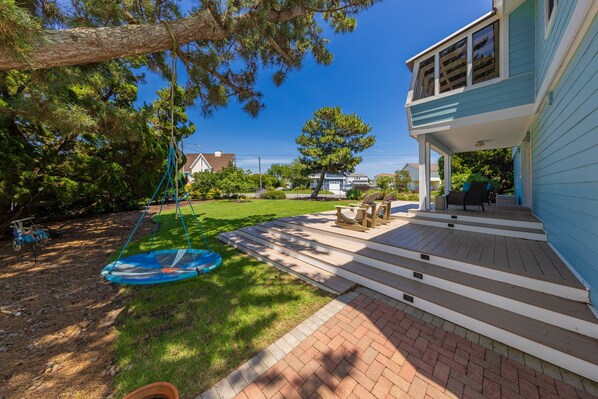 Outside you will find an in-ground swimming pool, tons of outdoor seating, a swingset, a beautifully landscaped yard, a small tiki cabana bar, a dock, and a boat ramp. Kayak and paddleboard rentals are available nearby.
