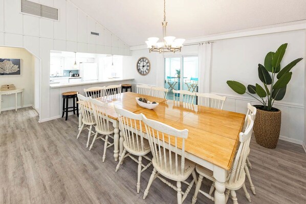 Need a break from the heat? The top level sun room and ground level den offers a reprieve for the kids while the adults can cool off and enjoy the great room and dining area. Cute, comfy and ready for your family, make sure to put “Shore Perfection” on the top of your list for you next family vacation!