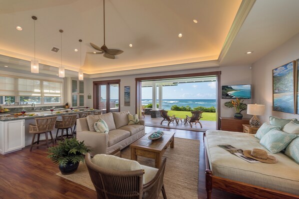 Living area - Designer Two Bedroom | Directly Beachfront | AC | Gourmet Kitchen | Private (Waialua)