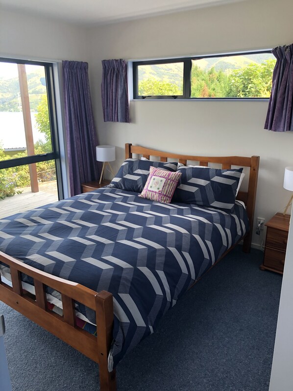 Escape to a tranquil retreat with great views of the Akaroa heads. Enjoy walks and swims at the beach, or explore local wineries just a short drive away.