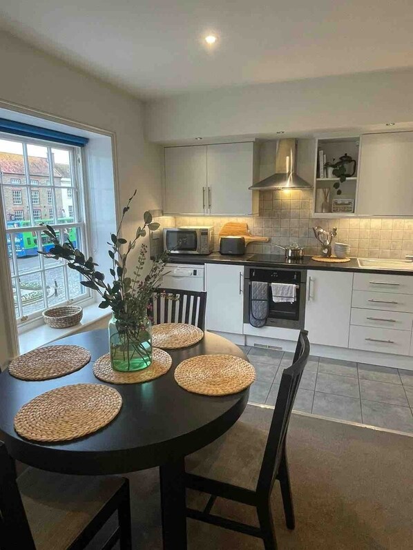 You’ll enjoy the convenience of two modern bathrooms, one with a relaxing bath and both with walk-in showers - perfect for unwinding after a day of exploring the beautiful town and surrounding countryside. The well-equipped kitchen/lounge/diner is designed for both relaxation and entertaining, with everything you need to prepare meals, enjoy family dinners, or simply relax with a glass of wine.