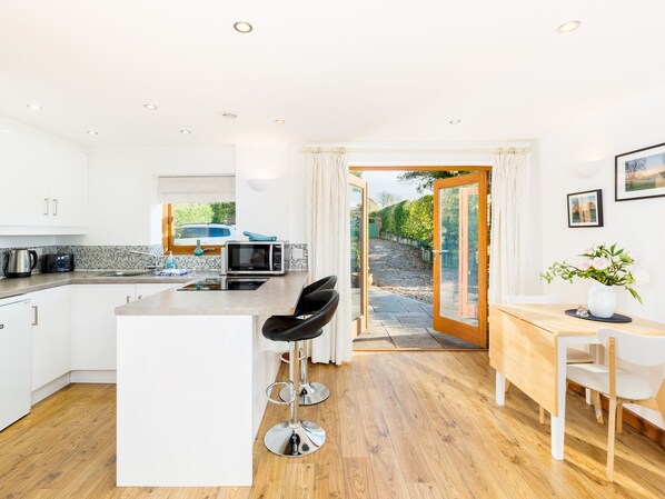 Field View, nestled down a private driveway, offers a serene retreat with views across the fields. Unwind on your own outdoor terrace or enjoy village life in Rowington at the nearby pub/restaurant. With smart TV and Wi-Fi, this spacious living area is perfect for relaxation and work.