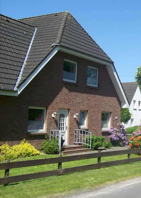 The bright, spacious vacation apartment (70 m²) for 2 people is located on the landlord's farm. The small village near Wesselburen is quiet and tranquil, surrounded by green fields with many paths for walkers and cyclists. The landlord has a large playground and a playroom for children, and the ponies and rabbits love to be stroked. There is a communal garden shed on the meadow for sociable evenings, as the hosts rent out a total of 5 accommodations to vacation guests. There are plenty of bicycles available and a car parking space is of course provided.