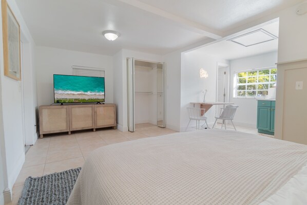 Welcome to our coastal cottage! This newly updated studio is located just minutes from Antique Row, Pristine Beaches, Downtown Fun, Shopping, and only blocks away from Top Restaurants, Groceries, Major Highways, Palm Beach Airport, and Palm Beach Zoo. This private space was designed to provide guest with a fun, safe, relaxing, and private oasis while enjoying all Palm Beach has to offer. Guests are treated to a luxury queen bed for ultimate comfort. Free parking. 55-inch Smart TV with all major steaming platforms. Lightning-fast fiber optic internet. Fully stocked kitchen. Spacious bathroom. Dining room table. Access to beach chairs for your relaxing day in the sun! Come and stay awhile and experience Palm Beach the way you deserve.