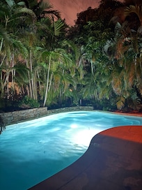 Your private tropical sanctuary awaits. Enjoy the pool overlooking a beautifully landscaped garden, a BBQ space and a shaded porch perfect for lounging, reading, or dining under the stars.