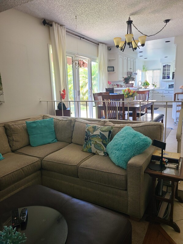 Private 3 bd / 2 ba unit with King, Queen and twin beds. Located in a beautifully remodeled 2000 sq ft house in Westminster, CA. Access to all common areas, Living room with 55" smart TV, family room with 65" smart TV, dining room. Fully stocked kitchen with all cooking equipment, utensils and dishes available. Floors are all wood and tile. Dining room seats 8. Outdoor table with umbrella. In house laundry facilities. Some in house workout equipment. (Treadmill, barbells, bands...) Beautifully landscaped inviting pet friendly backyard oasis with covered patio lounge chairs and large grassy yard filled with fruit trees. Utilities included. Central heating and Air conditioning. Many nearby stores: Target - 1.3m Albertsons - 1.8m