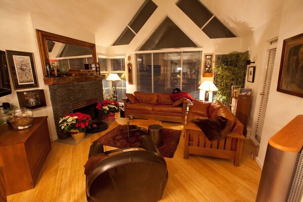 Woodrun 603 features: Airy cathedral ceilings, Mountain views, Master suite with floor to ceiling windows, full bath with tub and shower, smart TVs in all rooms, HDTV/BluRay DVD, Two full bathrooms, High speed complimentary private wireless internet access, HDTV/BluRay DVD/Apple TV/Roku with a selection of DVD’s, Paperback library, Selection of maps and guidebooks, Sonos system throughout (just download the app for your iPhone or Android device and have XM radio, Spotify or Pandora music in every room), Queen size sleeper sofa, Gas fireplace, En-suite washer & dryer, Covered furnished balcony, Secure indoor ski and bike storage, Free garage parking with EV chargers, Front desk concierge service, Soft monogrammed pool towels & robes, Queen/double bunk bed in second bedroom, and DVD in second bedroom.