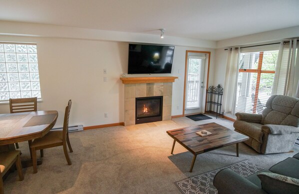 TV, fireplace - Updated Whistler Village Condo with Pool, Hot Tub and Free Parking (Whistler)