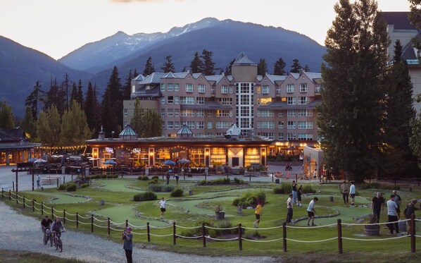 Painted Cliff offers ski access when conditions allow or a short walk to Merlin’s Run leading to the Blackcomb Gondola and Magic Chair. A nearby free shuttle connects you to Whistler Village for dining and après-ski.