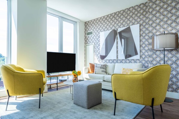 This apartment is professionally managed by Furnished Quarters, the largest independently owned and operated supplier of short-term furnished housing with over 25 years of experience in the industry. This luxury building includes amenities such as 24-hour concierge, fitness center, rooftop lounge, outdoor pool and grilling area, business center, game room, dog wash, laundry facilities, children's playroom and more. Conveniently located in downtown White Plains and nearby public transporatation.Live in luxury in this two-bedroom apartment featuring floor-to-ceiling windows, high ceilings, large closets and an in-unit washer/dryer. All beds provided are fitted with plush linens and pillow. All Furnished Quarters apartments include 24/7 guest service. Pets are allowed in select apartments and are subject to a $500 non-refundable pet sanitation fee for one pet, $750 for two pets. Additional charges and size/breed restrictions may apply and vary by building. All pets must be approved by Furnished Quarters. Please let us know ahead of booking if you plan on traveling with a pet. Note, a background check is required per building regulations prior to check-in.