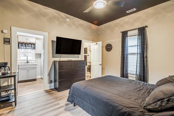 Single family home in the heart of the Delano District in Wichita. 1 adjustable queen bed with a queen pull out couch. Sleeps up to 4 people. Relax in the backyard around the fire pit. Less than 6 miles away from Eisenhower Airport. 1.3 miles away from Riverfront Stadium and 1.9 miles away from Intrust Bank Arena. 1.7 miles away from Wichita Historic Old Town. This Delano home is blocks away from all the action Delano has to offer. Enjoy a stylish experience at this centrally-located place. Enjoy a warm atmosphere with heating and cool off with air conditioning whenever you like. Whether you're relaxing indoors or planning your day, this wonderful home offers a welcoming space to recharge. We look forward to hosting you at our place.