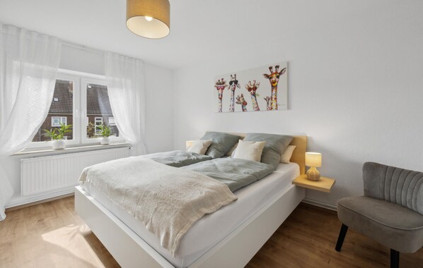 Use your vacation apartment on the second floor for your activities in the region and as a comfortable retreat. Feel at home in the tastefully furnished accommodation. The spacious living room invites you to relax, equipped with a comfortable sofa and a TV, ideal for cozy movie nights. Use the stylish dining area to dine with family or friends and make plans for the next day. Prepare your favorite dishes in the practical kitchen and enjoy the inviting atmosphere of your vacation apartment.