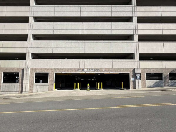 Parking for The Cove is conveniently located in a nearby garage approximately 0.3 miles from the dock. The garage offers 24/7 in/out access and is equipped with an elevator for easy loading and unloading. Parking for one vehicle per reservation is included, with additional parking available at daily rates set by the garage.