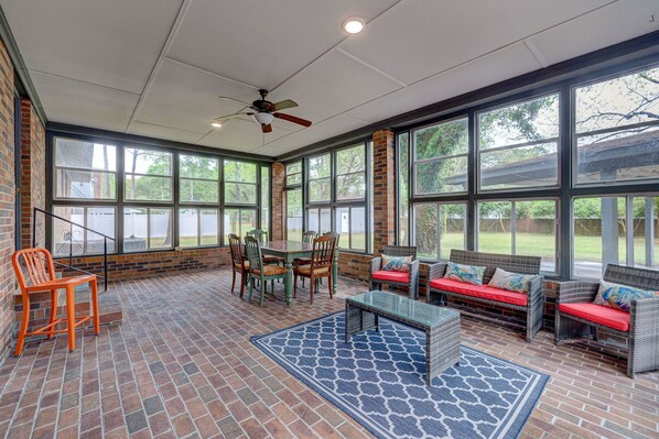 I want to start by saying that this house has a lot of potential. It is in a great central location, easy to find, and the yard and enclosed patio are great features. Check in was easy with keyless entry. However, there was no pre-check in message from the owner as we have gotten from others in the past. We had some issues upon arrival that we notified Tom of and he was very responsive. He offered to send the handyman who lives behind the house over to fix one of the issues and we declined as it wasn't detrimental I just wanted him to know about it. Here are some of the bigger issues: *Mold/Mildew in the house and the enclosed patio. It was very bad on the patio and we opened some windows out there as instructed but that did not help much. Not to mention, there were empty boxes and the patio was very dirty. You could not even sit on the furniture. We were unable to use that room. Inside the house also has mold around the windows and a very strong musty smell. We could not open the windows in the house because they were filthy and in need of a good cleaning and/or repair. One window had a large amount of mold growing on it. Many screens were not in good shape. *Out of Service Dishwasher - Tom said they were waiting on parts but I was never notified ahead of time and there was no Dish Drain to dry the dishes. *The air filter looked like it had not been changed in years. There was dust all over the cover. *Other issues - dusty ceiling fans, dirty baseboards, peeling paint on walls, doorways and in the master tub. Hair was left in the drain of the master. We never even used that shower. No where to hang towels in the master. No end table for one of the lamps in the living room it was just set on the floor. Dirty bedding and a hair tie left on one of the beds (We just closed that room off and didn't use it). When I alerted Tom that we had to cut our trip short because of the mold smell, sent him my pictures (I also have a video but it was too large to send), and asked for a refund for the cleaning fee and one night we were not going to stay. He obliged and gave me an extra $50 and said he was going to the property to check it all out and that the parts were in for the dishwasher and they were fixing that, too. The house otherwise is very cute. The living room and dining area are large and great to gather the family. If the cleanliness and mold/mildew issues get addressed this would be a great place to stay!