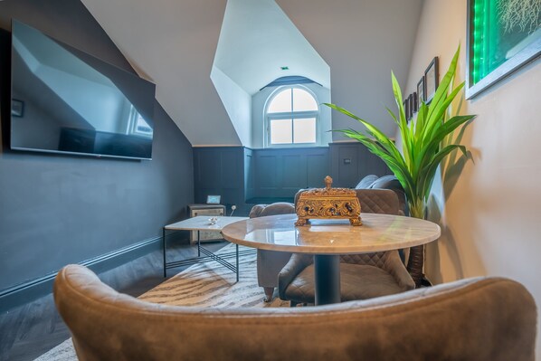 Escape to a one-bedroom luxury apartment where high-speed broadband and modern gadgets blend with relaxation. Unwind in the bedroom, complete with app-controlled blinds and mood lighting, or enjoy the designer eating area surrounded by artwork.