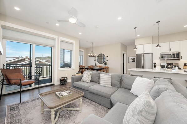 Pet Friendly, luxury 2 bedroom on Main Street in downtown provides amenities, such as golfing on-site and a hot tub.