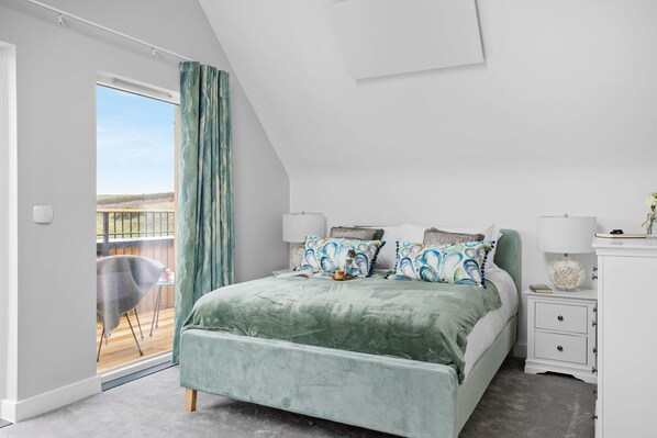 The double volume open plan living / dining / cooking space is ideal for entertaining with sliding doors accessing the terrace and extensive shared grounds where you can BBQ, relax and unwind to your heart's content. The home's four luxury bedrooms include a twin and king on the ground floor, and another twin and king upstairs. Both twin rooms can be reconfigured to super kings to suit all groups of guests so whether you're a large family or four couples, the house can be tailored to your individual needs.