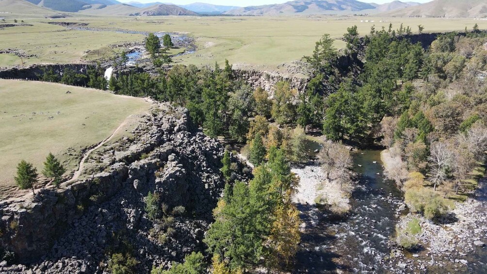 Drive to Orkhon Waterfall, formed 20,000 years ago. Visit Tuvkhun Monastery, built for meditation and art, located atop Shireet Ulaan Mountain. Relax in hot spring.