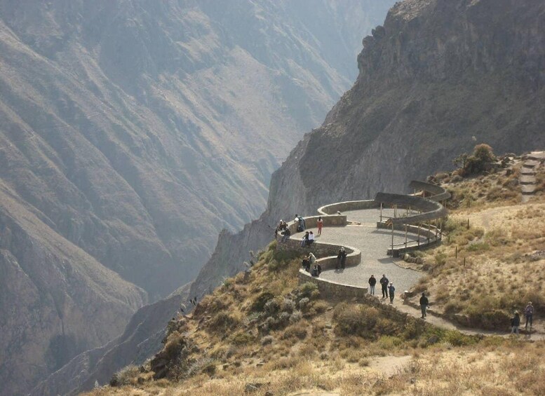 Approximately at 08:30 we will arrive at the Cruz del Cóndor from where we will be able to appreciate one of the deepest canyons in the world and where the condor sanctuary is located. On the way back we will stop at the towns of Pinchollo, Maca and Yanque that have beautiful colonial churches; as well as at the Miradores de Antahuilque and Choquetico from where we will be able to observe the pre-Incan tombs and models and the beautiful Colca landscape with its impressive terraces. In addition, we will appreciate the typical costumes, the camelids and trained birds, and traditional drinks such as the Colca Sour made in Sancayo.