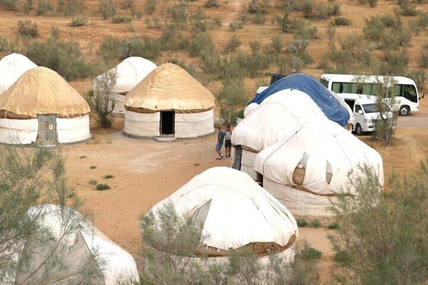 Class of service: Transport, Hotel Pickup from Samarkand and Drop-off back to Hotel in Samarkand, Yurt Camping Experience.