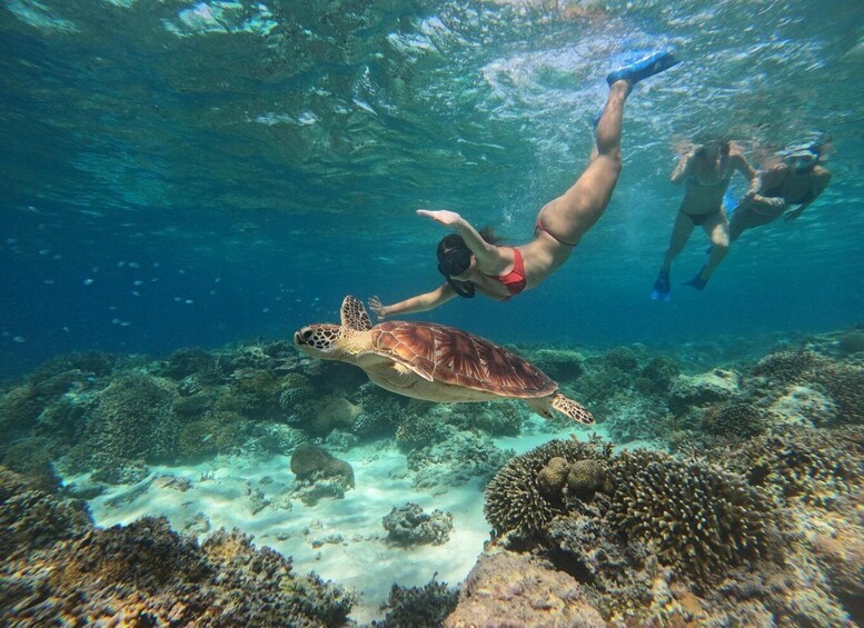 One of the most popular snorkelling areas is around Turtle Point, located on the northeastern part of the island. As its name suggests, Turtle Point is famous for its resident sea turtles. Snorkellers here are almost guaranteed to encounter these gentle creatures grazing on sea grass or gracefully swimming by. Green sea turtles and hawksbill turtles are the most common species found here. The presence of these majestic animals makes snorkelling at Turtle Point a memorable experience, providing close-up encounters that are both thrilling and serene.