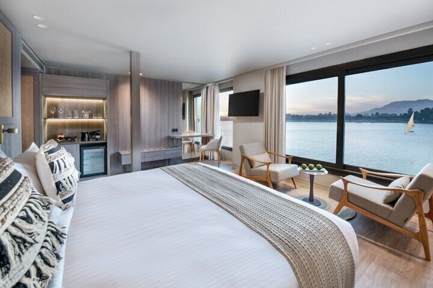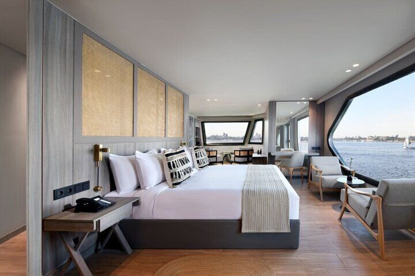 Ultra-Deluxe Nile Cruises: Offers premium amenities with the most spacious and luxurious rooms, featuring elegant décor, higher-end furnishings.