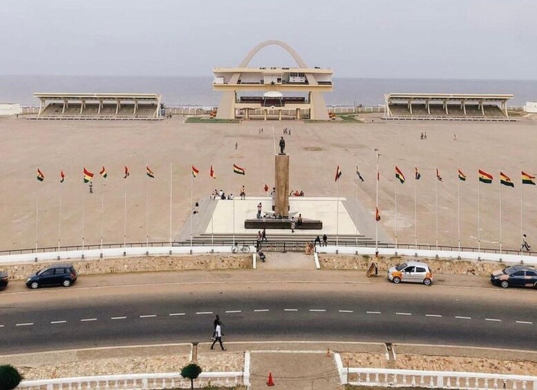 Your 4-hour adventure begins with a convenient pickup from your hotel or residence. Settle into an air-conditioned vehicle and let your knowledgeable guide introduce you to the heart of Accra. Your journey starts at the iconic Independence Square, the historic ground where Ghana declared its independence. Ascend the Black Star Gate, a symbol of African liberation, and absorb the panoramic views of the city.