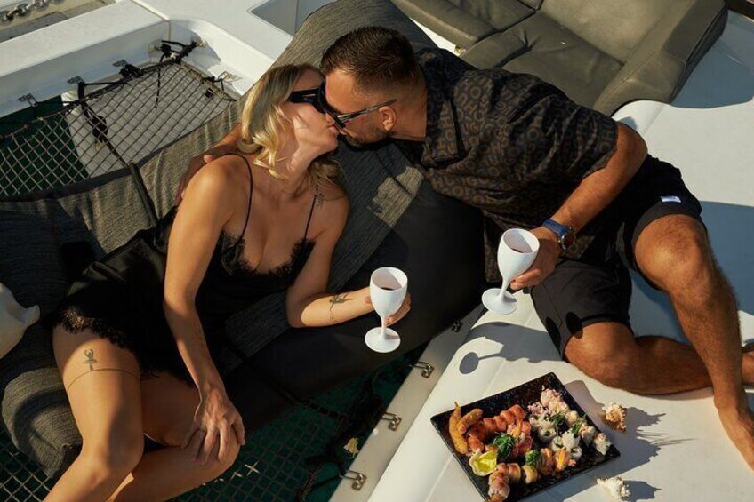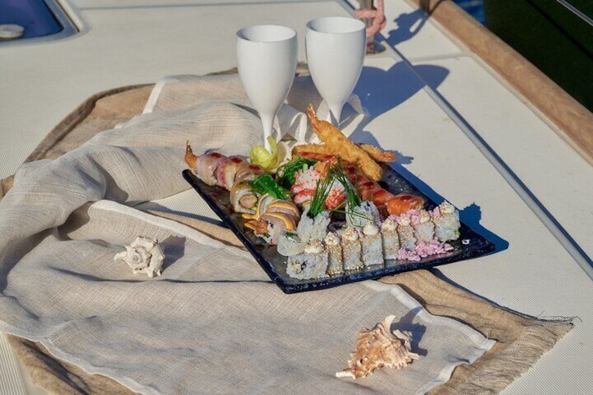 Ag. Nikolaos: Catamaran Trip with Sushi, Drinks, & Water Toys