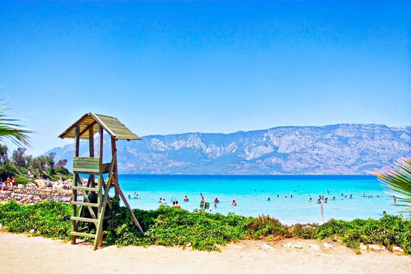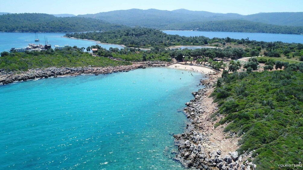 Next, head to Zeytinlik Bay, where you can enjoy another swimming break in calm, clean waters framed by olive-covered hills. Then, make your way to Cleopatra Island (Sedir Adası), home to the famous Cleopatra Beach, renowned for its unique golden sand and crystal-clear shallow sea.