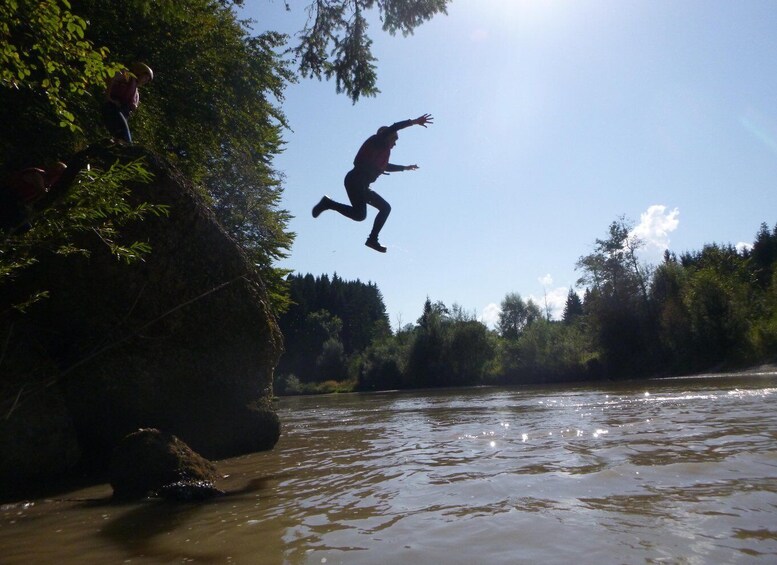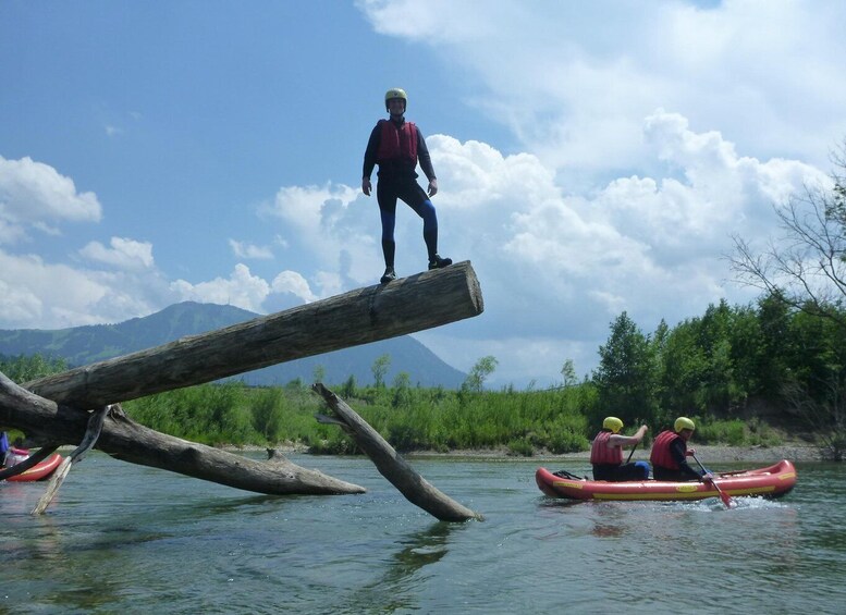 From Trettach, Stillach, and Breitach, which spring deep in the Allgäu Alps, the Iller forms after a few kilometres, at the Iller source near Oberstdorf. We paddle different river sections depending on the water level and your skill level. Smaller rapids alternative with quiet spots, you'll practice capsizing a boat and how to behave. The Iller offers an ideal introduction to canoeing for all nature lovers.