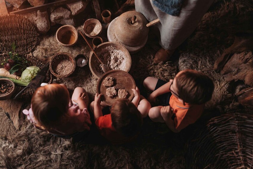 Demonstrations of cooking, weaving, and weaponry preparation