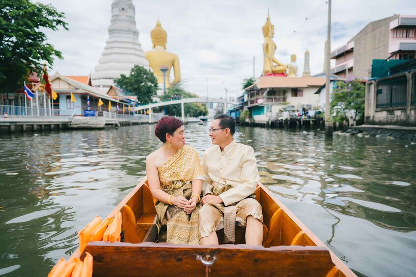 Valid for 2 Hours, Bangkok:Thai costume with Long tail boat photoshoot in Multilingual