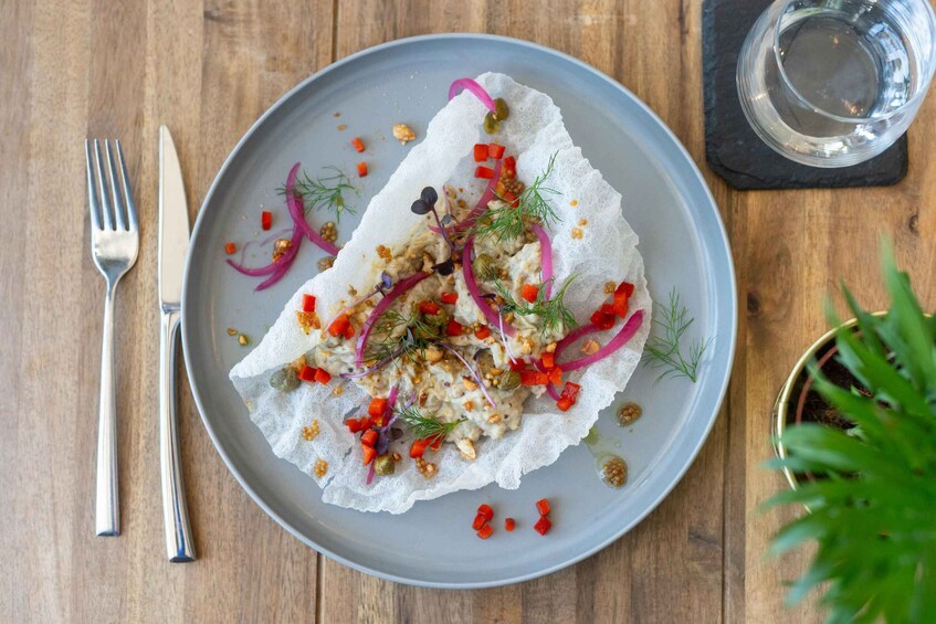 A meat-free, 4-course gourmet experience made with seasonal vegetables and bold flavours. Each dish is paired with a selected Hungarian wine. Includes unlimited still and sparkling Rudas Pure Aqua water.