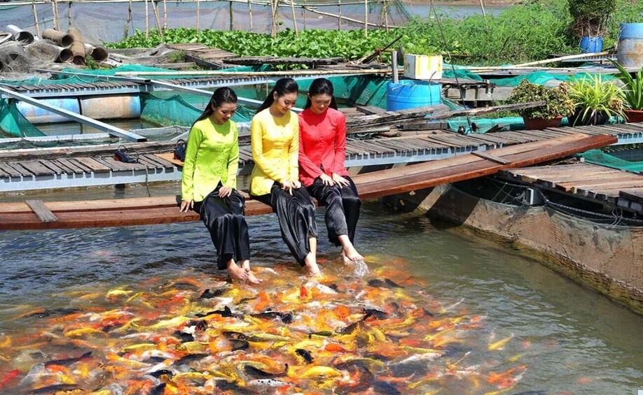 In Cồn Sơn, experience local life with activities like Koi fish massage, visiting a seasonal fruit garden, watching the flying snakehead fish technique, and learning how to make traditional cakes. Enjoy a Southern Vietnamese lunch in Cồn Sơn before returning to Cần Thơ for drop-off.