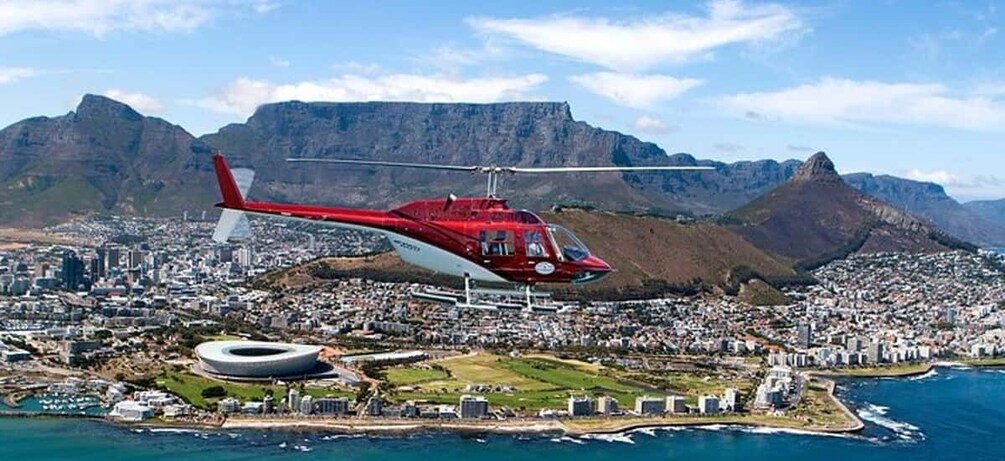 Begin your tour at the V&A Waterfront helicopter right in central Cape Town. Climb into a helicopter & kick off the adventure with a complete circle around the city’s most recognisable landmark. Continue over the city to see Cape Town Stadium, one of the hosts of the 2010 World Cup, & down along the coast of the Atlantic Ocean.