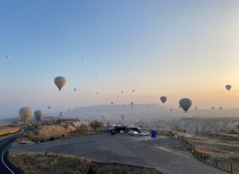 Panorama of hot air balloons or “Chasing Balloons”. This is an hour and a half excursion. If you are not flying with a hot air balloon, you have the chance to watch 150 hot air balloons rise one by one over Cappadocia at dawn. They hang at different heights for an hour.