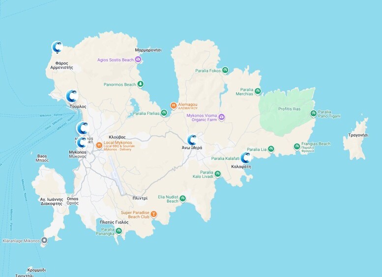 This option does not include transport. You will meet the guide in front of the Mykonos police station, near the old port, across from Faro Café.