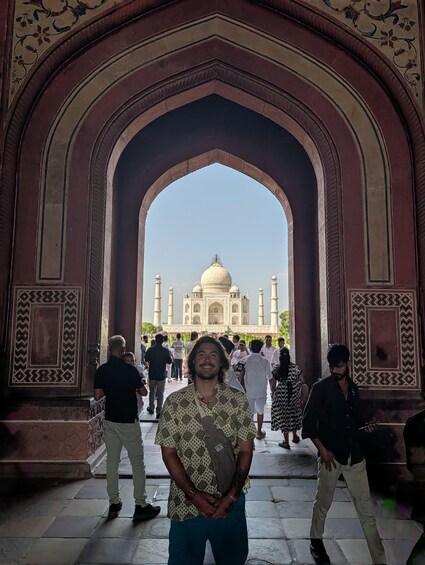 Battery bus ride to and from the Taj Mahal car park up to the Taj Mahal monument