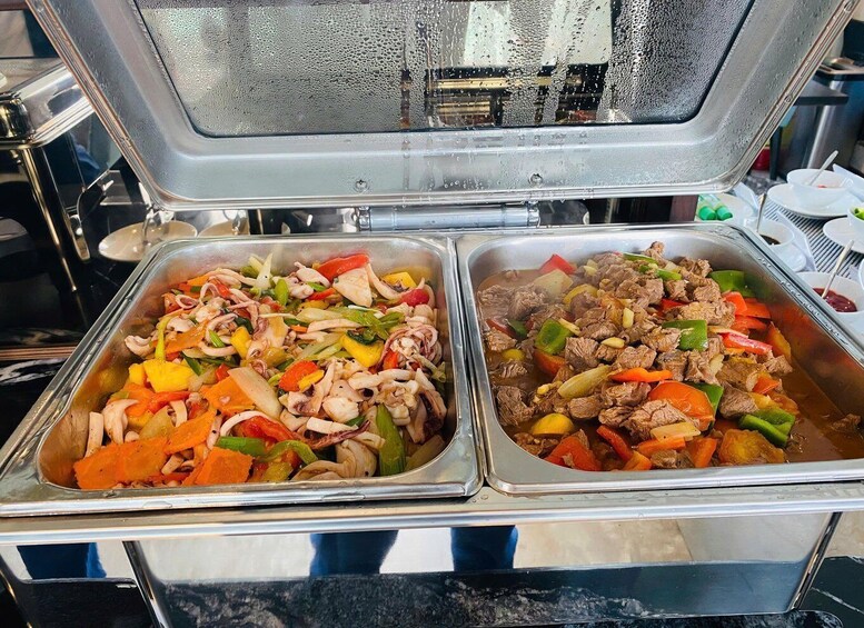 Around 11:30 AM, savour a delicious onboard lunch featuring fresh local seafood and Vietnamese flavours. Afterwards, get ready for adventure: take a local rowing boat or kayak to explore the mysterious Dark & Bright Cave, a hidden gem of the bay.