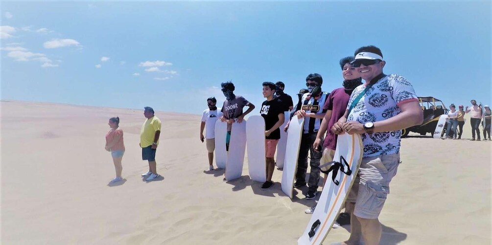 We will take rides in a 4X4 tubular transport and practice sandboarding in the Huacachina desert, where you will enjoy an incredible extreme adrenaline rush. The driver will stop the machine to give you some important techniques to be able to slide with the boards, once down, the tubular will go for you and continue again practising on different dunes and take spectacular shots.