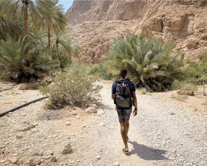 Once you arrive at the parking area near Wadi Shab, you'll need to hike a short distance to reach the entrance of the canyon.