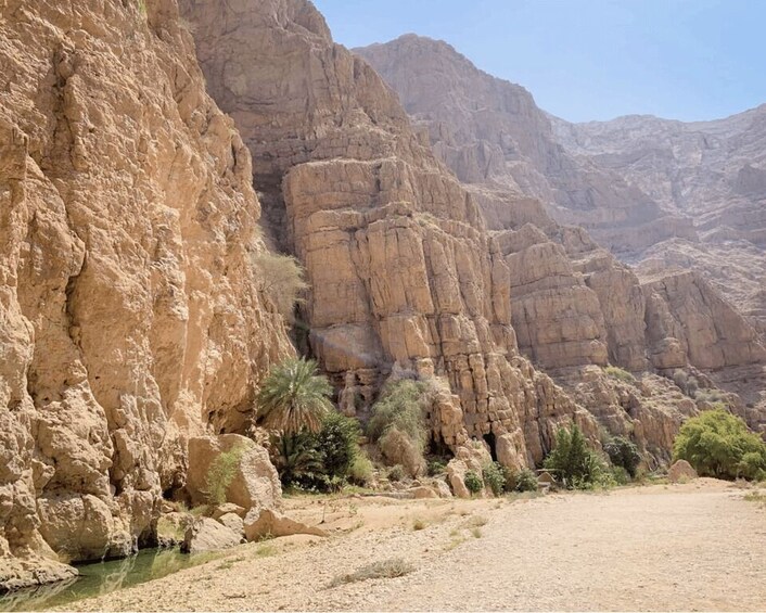 Enjoy the stunning views of the canyon walls and surrounding landscape as you make your way deeper into the wadi.